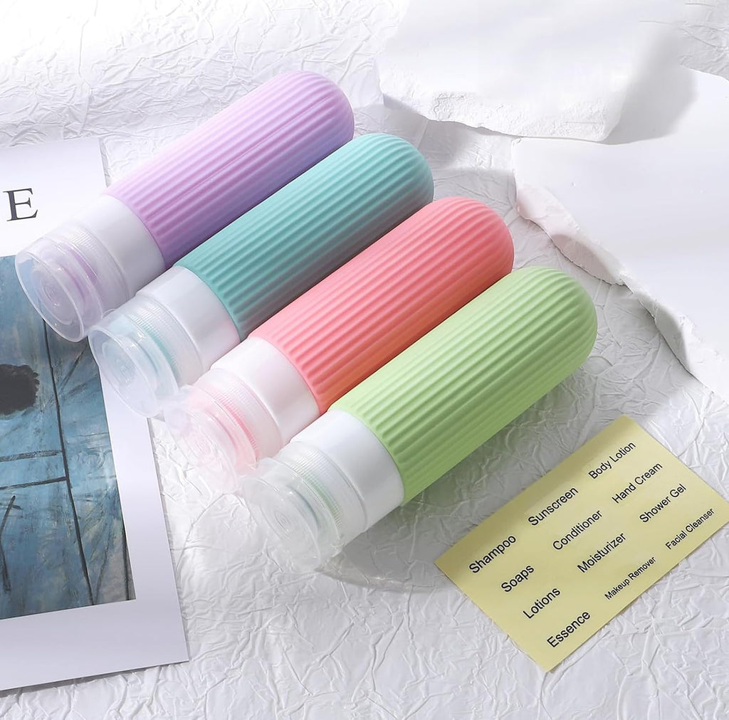 Lyrovo Travel Bottles Kit for Toiletries Organizer BPA Free 90ml Silicone Size Containers Portable Split Bottle Accessories for Conditioner Shampoo Lotion - 4 Pack (Bright)